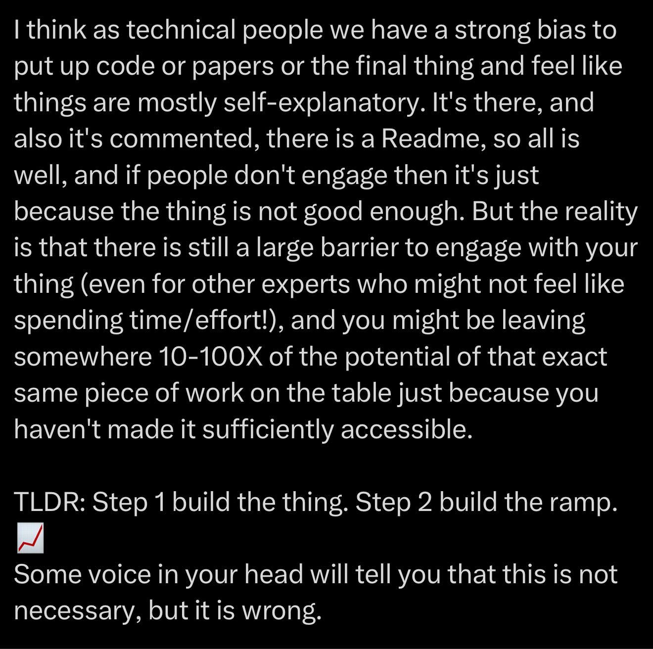 I found what Andrej Karpathy said on the importance of accessibility to what you create - a reason why I decided to express things in this post.